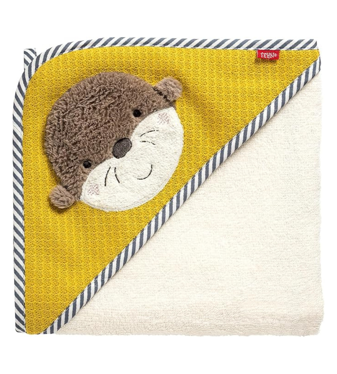 Asciugamano accappatoio realizzato in morbida spugna con cappuccio molto assorbente e morbido per il benessere del bimbo e un’asciugatura rapida dopo il bagnetto. Protegge la testolina del neonato dalle correnti d’aria grazie al pratico cappuccio. Dal divertente e giocoso design, grazie al morbido peluche renderà l’esperienza del bagno del bambino ancor più piacevole e rilassante.