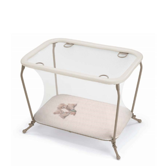 Utilizzabile dai 0 ai 15 kg del bambino. 4 maniglie di sostegno per il bambino, per permettergli di stare in piedi da solo. Corrimano imbottito e resistente ai morsi. La rete, di contorno, non permette al bambino di rimanere impigliato con le dita. Chiusura compatta. Si pulisce facilmente con una spugna umida.