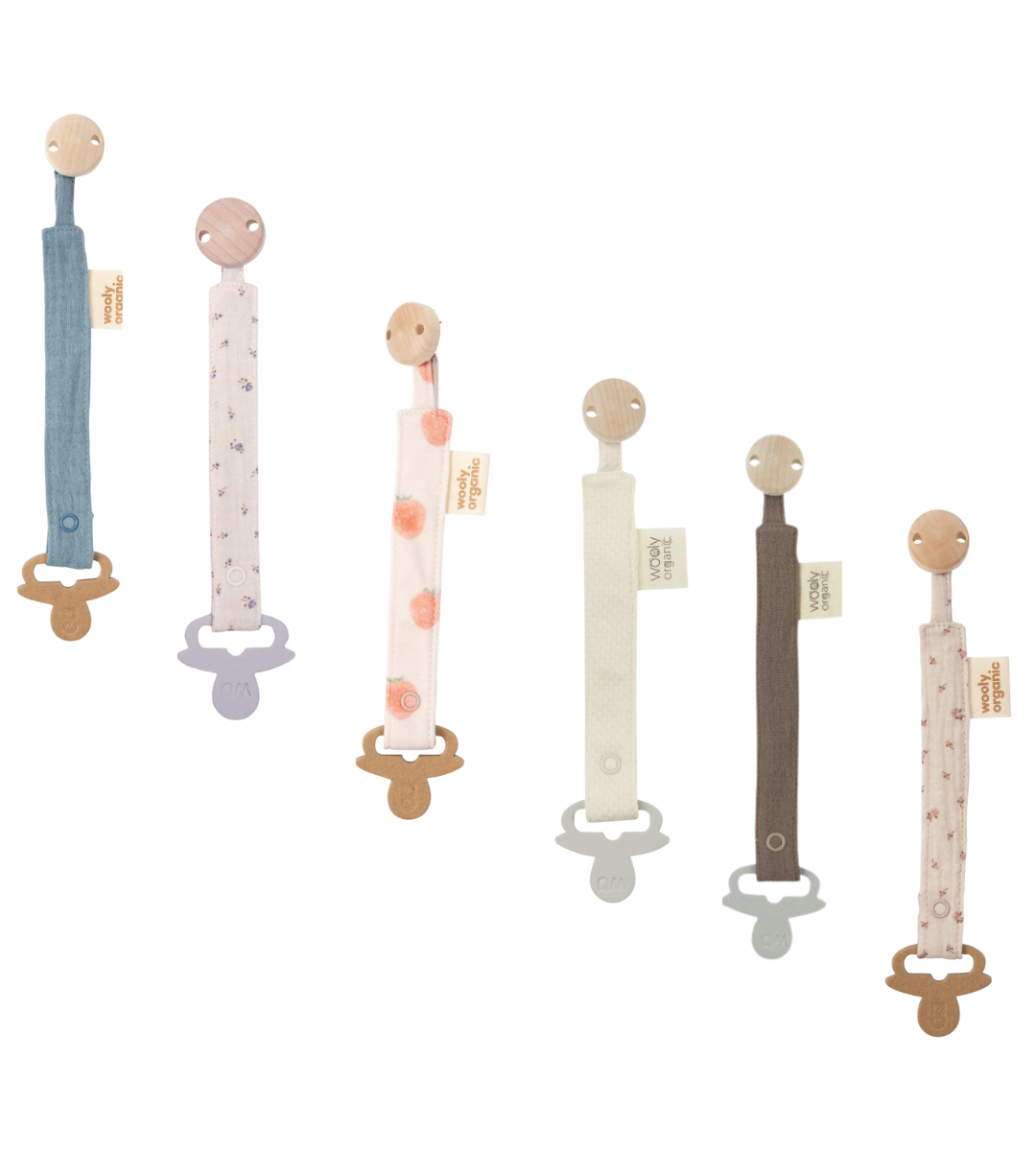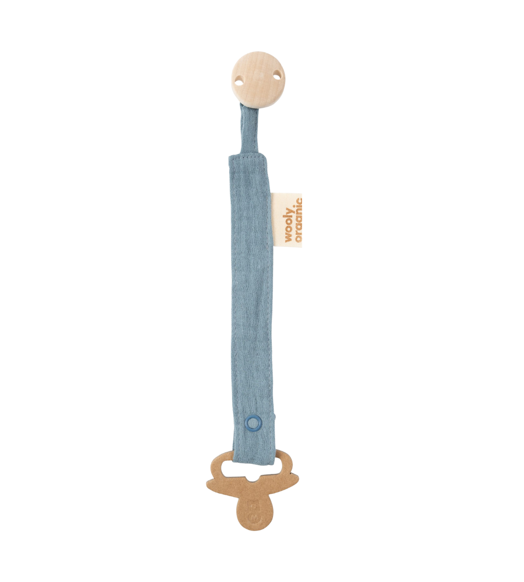 La clip per portare il ciuccio in mussola di Wooly Organic è pratica e delicata sulla pelle del tuo bambino. Realizzata in morbida mussola di cotone 100% biologico certificato GOTS, è elegante, leggera, traspirante e piacevole al tatto. La clip resistente e sicura assicura una presa stabile sui vestiti, mentre il passante in tessuto permette di fissare facilmente il ciuccio, mantenendolo sempre pulito e vicino al bambino.