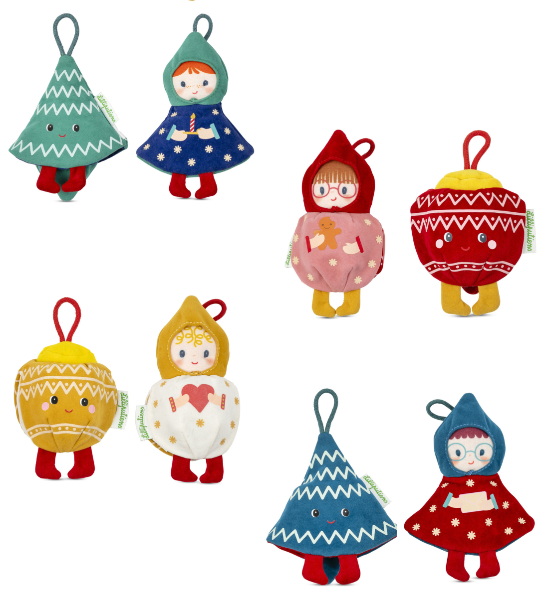 Bibbi, l’elfo natalizio di stoffa reversibile e fosforescente di Lilliputiens ama giocare a nascondino e porta un tocco di magia e dolcezza alle tue feste. E’ la decorazione ideale da appendere all’albero di Natale o ovunque tu voglia in casa. Bibbi assume anche l’aspetto di una pallina o di un alberello di Natale, a seconda dei modelli, che si illumina al buio. Immagina la gioia dei bambini quando scopriranno questa luce soffusa e sorprendente al buio!