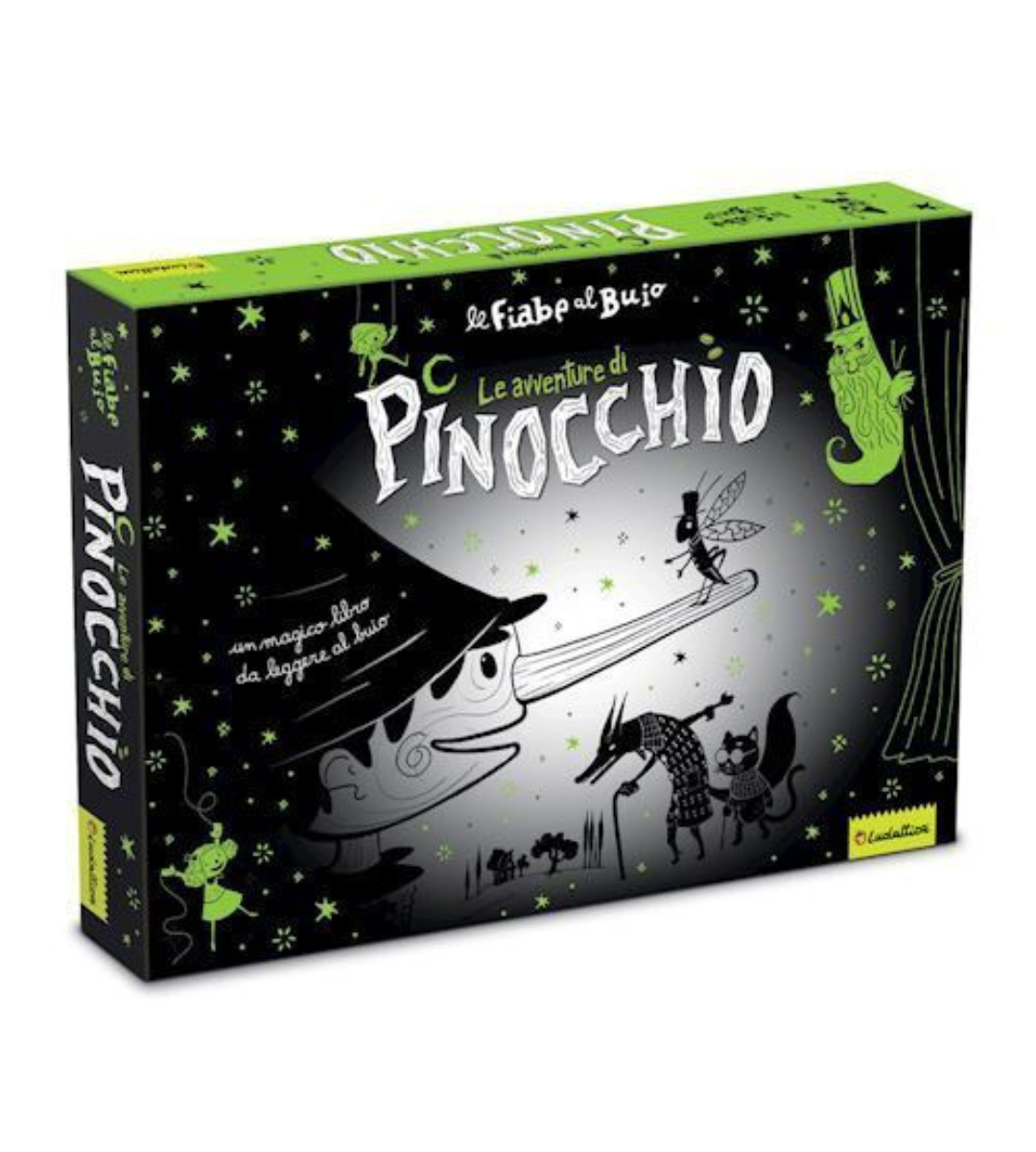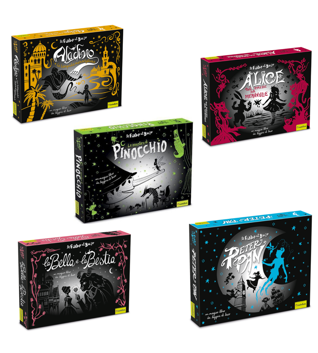 Un libro di grande fascino, da leggere al buio con l’aiuto della torcia inclusa nella confezione, che racconta, per immagini, l’avventura della fiaba acquistata. La potenza espressiva delle illustrazioni, realizzate in nero come silhouettes, rende la narrazione particolarmente suggestiva per i piccoli lettori. Il libro è contenuto in un’elegante confezione a cofanetto.