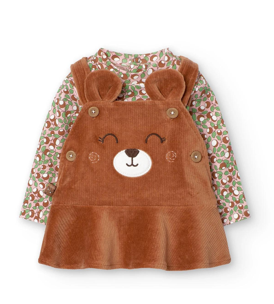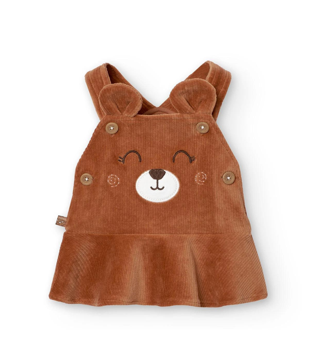COMPOSIZIONE: Maglietta Body a maniche lunghe 100% cotone; Gonna Salopette 60% cotone, 38% Poliestere, 2% Elastan.