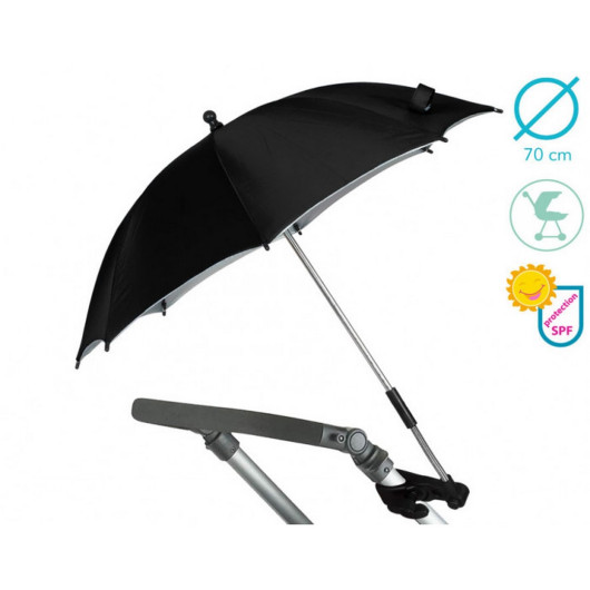 L’ombrello Kiokids con aggancio universale si adatta al telaio di qualsiasi passeggino in commercio.