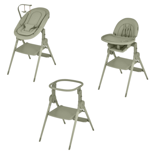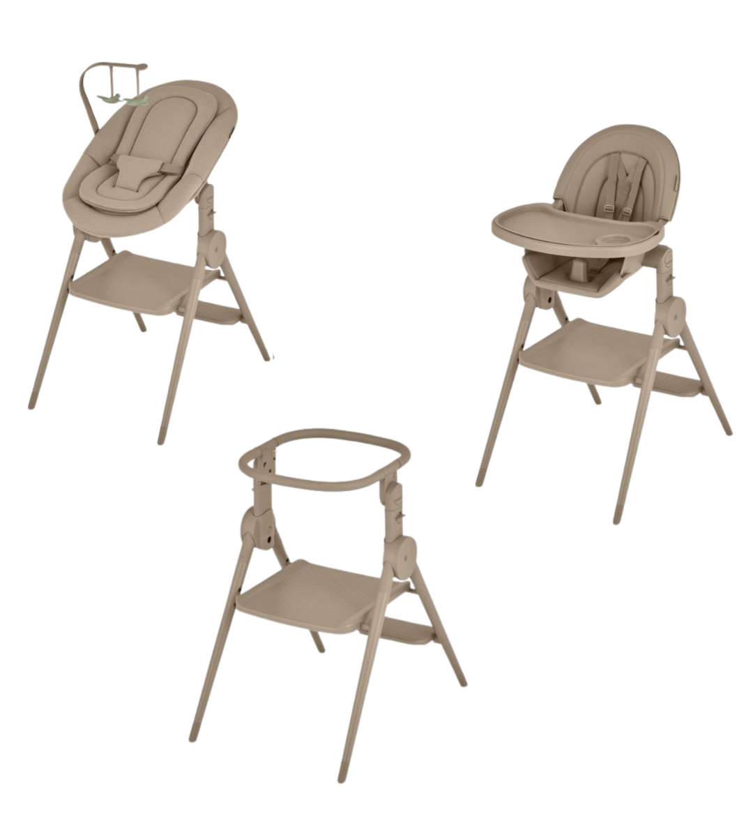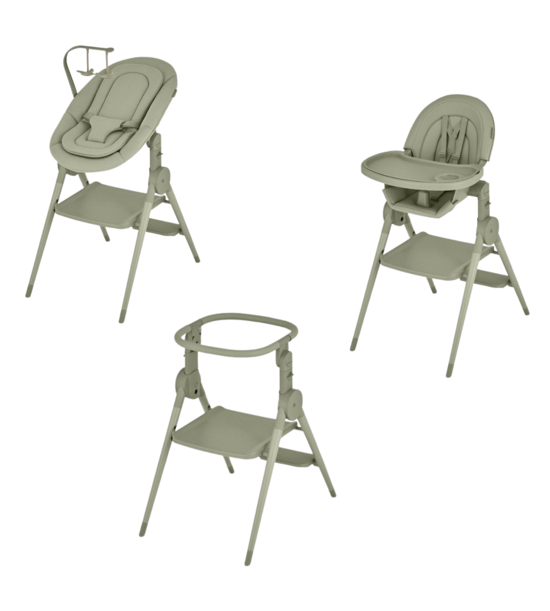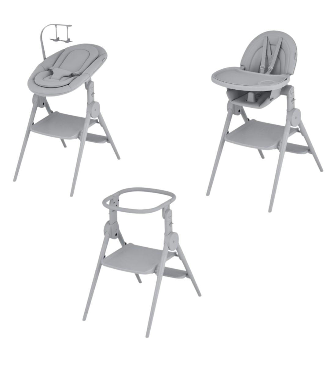 Ozy è un versatile prodotto 3 in 1 che include una sdraietta per neonati, un seggiolone pappa e una torre di apprendimento Montessoriana.