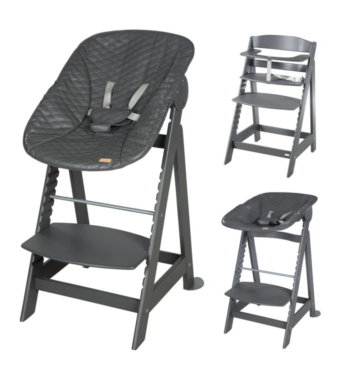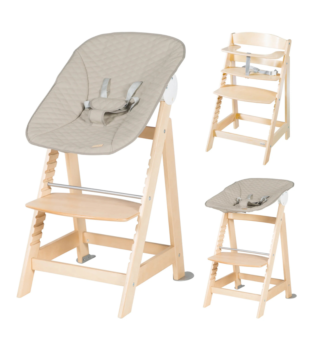 Il seggiolone evolutivo ‘Born Up’ Set 2in1 di Roba con adattatore sdraietta per neonati è il compagno ideale per il tuo bambino dalla nascita fino all’età adolescenziale. Dal design ergonomico il set è composto da sedia in legno e sdraietta in pelle vegana, regolabile in 2 posizioni attraverso un pratico bottone e adatta da 0 a 6 mesi fino a un peso di 9 kg del bambino. Il seggiolone cresce, grazie alla rimozione del tutore di sicurezza e del sistema di cinghie, in modo graduale, secondo l’età del bambino, fino a diventare una vera e propria sedia per adolescenti attraverso il sedile e il poggiapiedi regolabili in altezza e removibili del tutto.