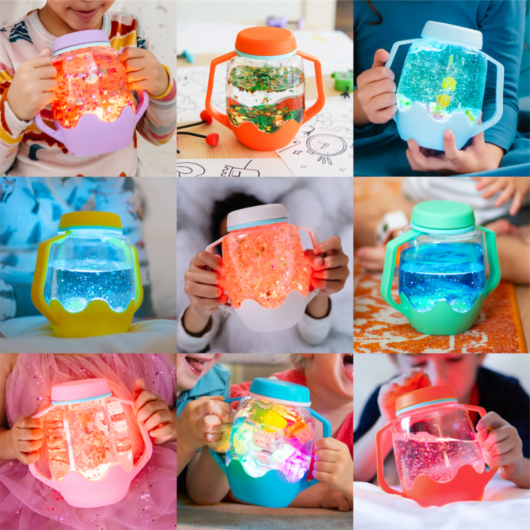 Questo barattolo sensoriale a dalla forma di una grande tazza può essere personalizzato e riempito a proprio piacimento, mettendoci dentro dei cubetti luminosi oppure glitter, perline, bottoni, piccoli giochi di plastica…o tutto quello che ti suggerisce la fantasia. Una volta riempito, poi, va aggiunta dell’acqua per farlo illuminare! E basterà toccarlo per fare cambiare colore alla luce ed aggiungere un tocco magico a tutta la stanza. Il coperchio è a tenuta stagna, quindi non perde.