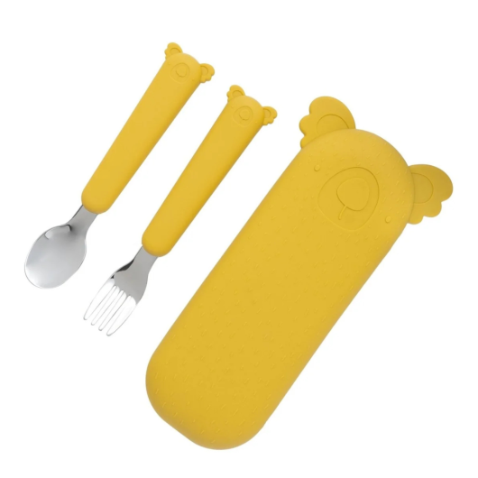 Set di posate in acciaio inossidabile 304 di alta qualità con custodia in silicone alimentare, perfetto per i bambini che iniziano il loro percorso con i cibi solidi. Sicuro, resistente e costruito per durare nel tempo, hanno la forma di un simpatico koala. Ideali per bambini dai 12 mesi in su, senza BPA, PVC, ftalati e piombo – 100% adatte ai bambini! Design ergonomico: manici morbidi in silicone facili da impugnare anche per le manine più piccole e perfetti per imparare a mangiare da soli. Pronto per essere portato in giro: il set viene fornito con una pratica custodia in silicone per tenere tutto pulito e al sicuro quando sei fuori casa. Lavabile in lavastoviglie: facile da pulire in lavastoviglie o a mano.