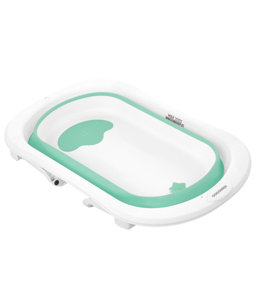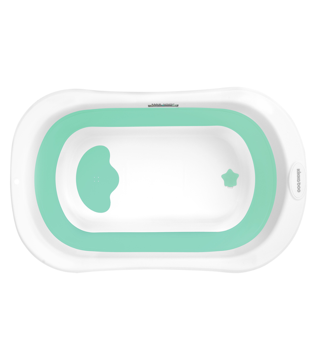 Vasca da bagno adatta dalla nascita fino ai 36 mesi circa del bambino; materiali atossici di alta qualità; facile da pulire e dal  design compatto e pieghevole;  tappo di scarico con sensore termico.